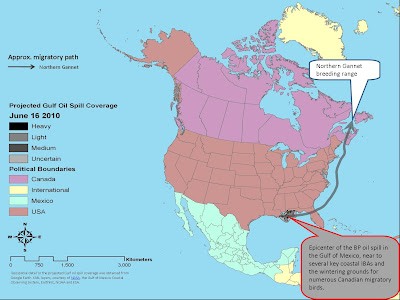 Most adults had already made their migration north, away from the Gulf, in April before the oil spill began. However, juvenile gannets remain in those dangerous waters and were among the first avian victims of the spill. The fall migration back to the Gulf occurs in October. There is no way of knowing whether the effects of the spill will be cleaned up by then, but the damage to the species’ future has already been done.