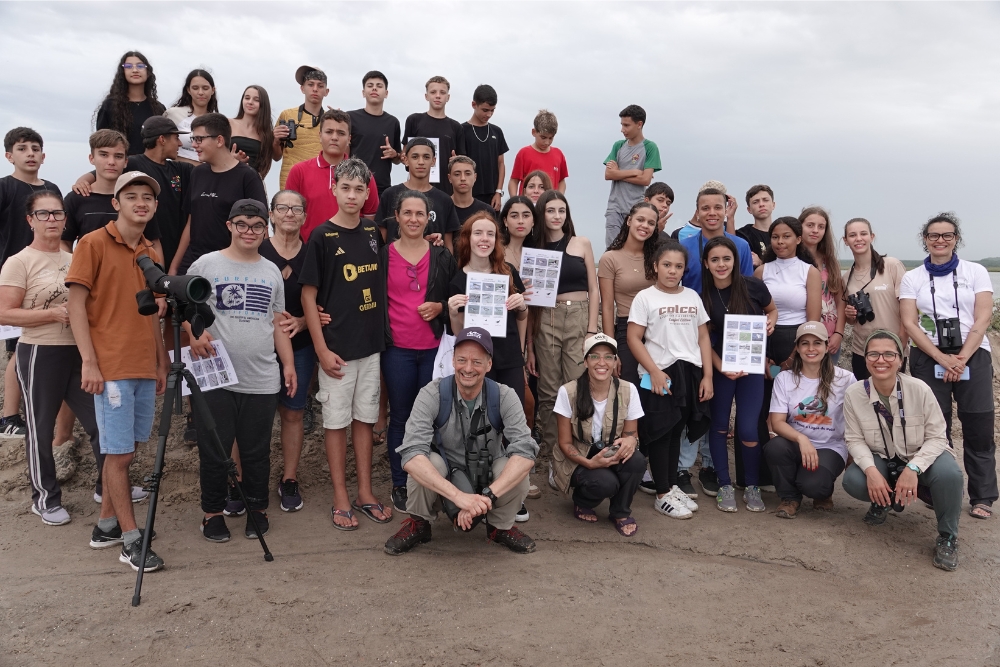 We milled about amongst students from the Izabel Cristina and Marcelo Gama schools, located by Lagoa do Peixe National Park in the Brazilian cities of Tavares and Mostardas, respectively. Ted shared his camera with them, teaching them quickly how to photograph the White-rumped Sandpipers, Black-bellied Plovers, Ruddy Turnstones and Lesser Yellowlegs, mingling amongst the massive Maguari Storks and the Roseate Spoonbills. We mused with students about how these birds would race us back to Canada. While many enjoyed the socializing, liberated by the absence of the four classroom walls, several of them marvelled at the stunning surroundings and wildlife.