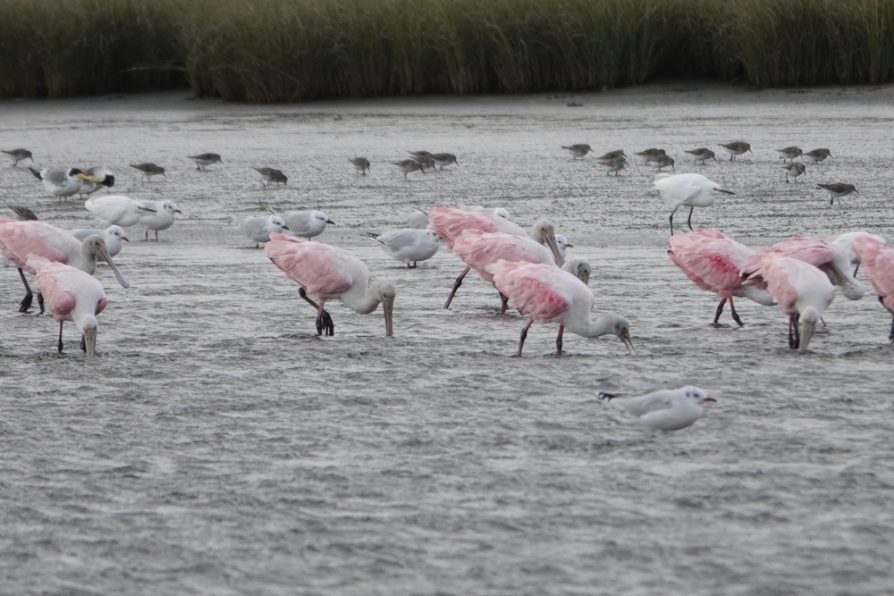 Throughout the week, groups of DDECS students clamoured off the boats onto the silty coastline of Shipsands Island. Most were hoping to see some of the shorebirds that their teachers had talked about – and geese, of course! Lara pointed at some birds, about 50 metres away. The sun reflected off the shimmering silvery backs of a small group of Black-bellied Plovers in stunning breeding plumages. We like to think that they accepted our meeting invitation made in Brazil just two months before – and changed clothes for the occasion. Priscilla told them how the Black-bellied Plover is not named after the colour of its belly but rather its wingpits (Batuiruçu-de-axila-preta = Black Wingpit Plover in Brazil, as the black belly does not molt in until the birds have departed towards their breeding territories in northern Canada but the wingpits stay black all year round. They certainly showed off their black bellies for us! They had likely just arrived and were nervously moving about on the low-cropped salt marsh vegetation (thanks to the geese). It’s too bad the smoky skies that week didn’t allow for great pictures.