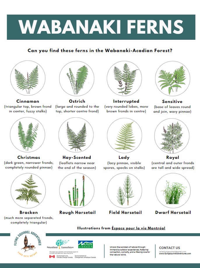 Are you interested in learning more about the different ferns that you might find in the Wabanaki-Acadian forest? Print out or download a digital version of this resource the next time you’re planning on going for a hike!
