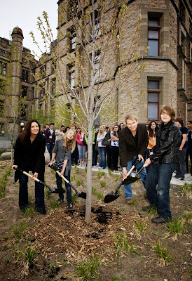 Photo: Alan Bateman and family plant the tree dedicated to his father, Robert Bateman, at the Canadian Museum of Nature.