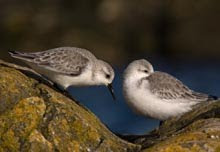 The Sanderling is one of the most widespread shorebirds in the world. This small, plump sandpiper can often be seen running along the coast in flocks. Sanderlings feed by probing the sand along the tideline with their bills, chasing after receding waves to pick up stranded crustaceans and molluscs.