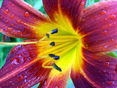 I took this photo at the Rosetta McClain Gardens, two blocks east of Kingston Road and Birchmount Road in Toronto, in the summer of 2008. It had just rained, but was sunny at the time of the photo, so this created the perfect environment for taking the photo with dew drops on the petals!