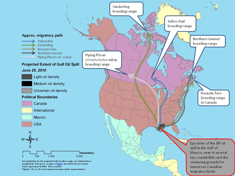 As birds arrive in the disaster zone, the oil spill will affect them in a number of ways: