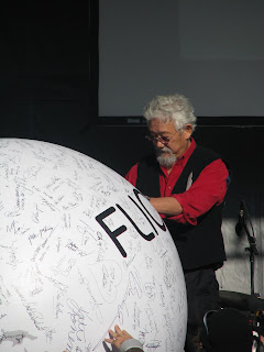 featuring Canadian environmental icon Dr. David Suzuki. Dr. Suzuki delivered a powerful and inspiring speech as part of a the FLICK-OFF campaign rally to get to 100% renewable energy for Canada that was held in nearby Confederation Park. That’s some of our workshop participants signing their names to the campaign below.