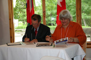 Nature Canada Board Chair Richard Yank and Manitoba Minister of Water Stewardship Christine Melnick sign international birding memorandum. |