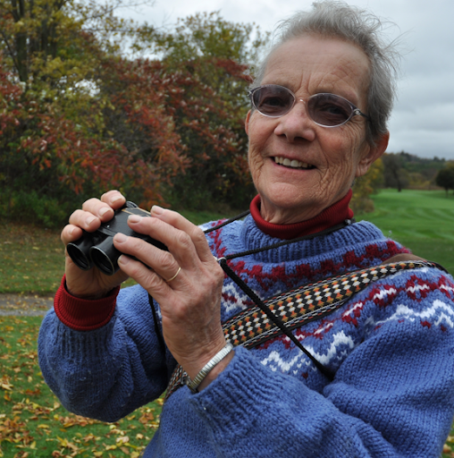 Audrey Wilson birdwatching. Photo credit Graham Davies