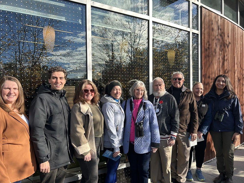 From left to right: Beverley King, Chief Librarian and CAO; Councillor Alex Hilson; Councillor Chantal Garneau; Bird Friendly HH members Alexis Harriman and Kathy Gastle; Councillor Clark Somerville; Councillor Bob Inglis; Jennifer Spence, Environmental Stewardship Coordinator; Catherine Edwards, Natural Assets Specialist. Photo: Town of Halton Hills