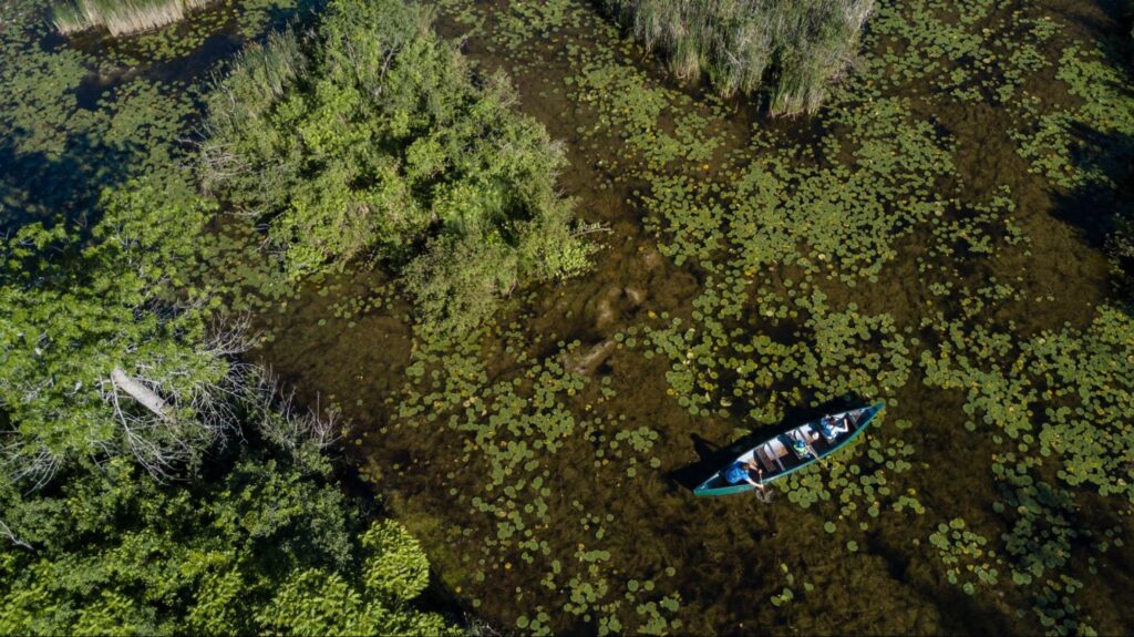 By summer, the wetlands are abundant. Dragonflies shimmer above open water while Great Blue Herons stand poised in quiet concentration. Families paddle through calm channels, and children move along the trails with binoculars and questions, noticing feathers caught in tall grass or the ripple of a turtle slipping below the surface. At Wye Marsh, wetlands are more than landscapes — they are living classrooms. Through research, interpretation, wildlife monitoring, and hands-on exploration, visitors are invited not simply to admire nature, but to engage with it.