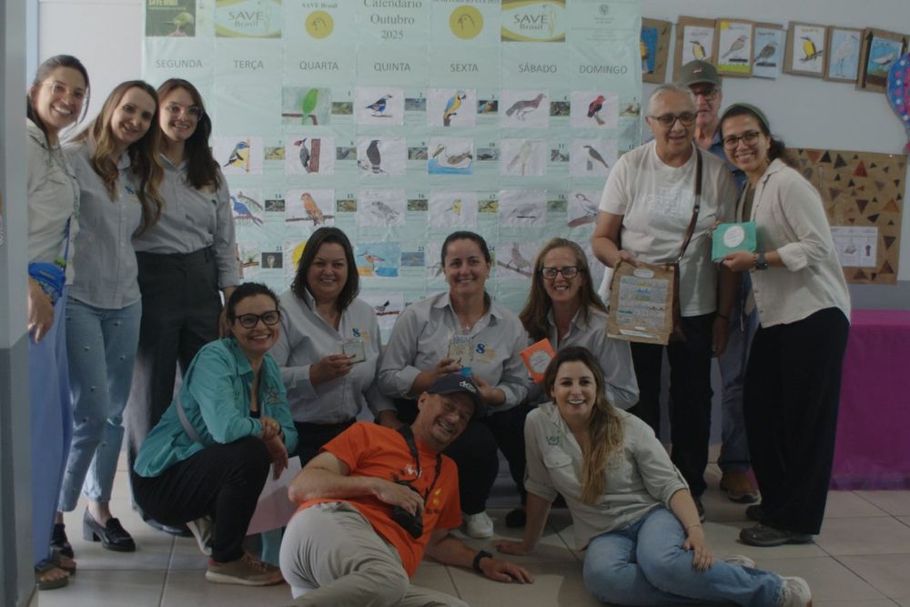 Photo 2: Picture with teachers showing students’ work on shorebirds at Izabel Cristina School in Tavares