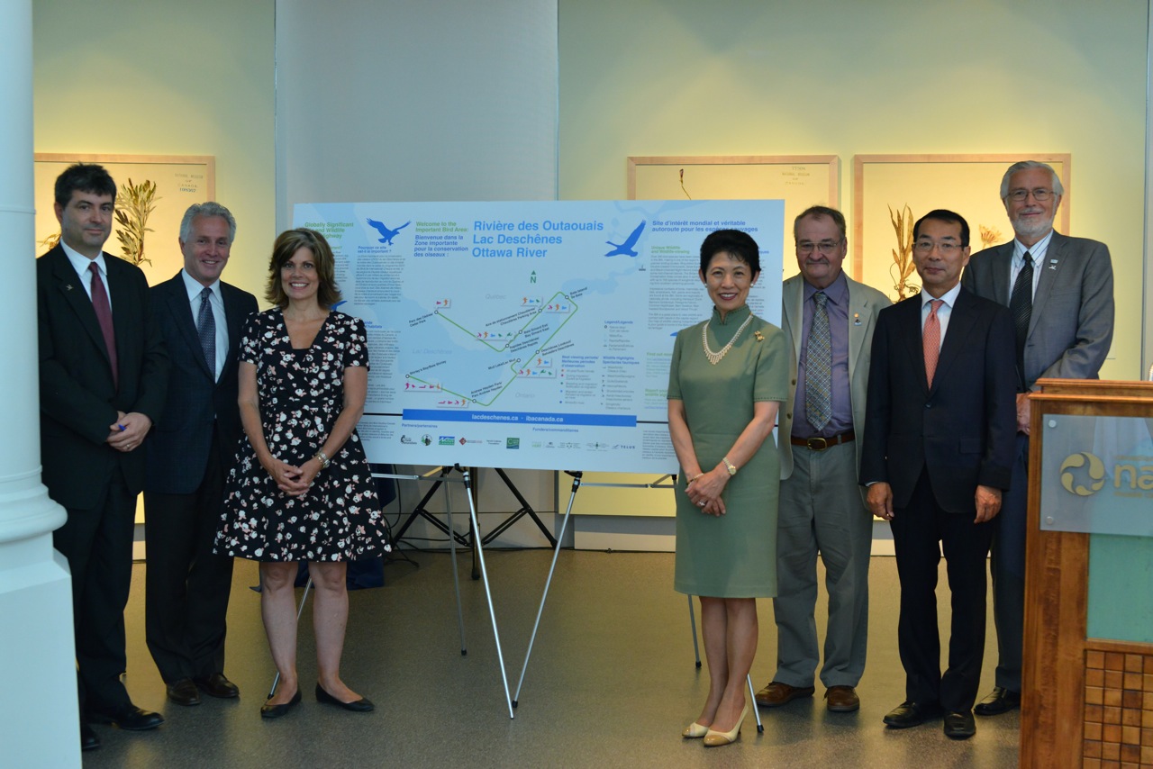 We were very honoured to be joined on this occasion by Honorary President of BirdLife International, Her Imperial Highness Princess Takamado of Japan, as well as BirdLife’s Honorary Vice-President, Peter Schei, and local VIPs Margaret Beckel, CEO of the Canadian Museum of NatureJean-François Trépanier, CEO of the National Capital Commission; Ottawa City Councillor Katherine Hobbs, and His Excellency Ambassador Okuda of Japan. And last but definitely not least George Finney, Executive Director of our BirdLife co-partner Bird Studies Canada joined us for the event to talk about the IBA Canada partnership. These individuals are pictured above.