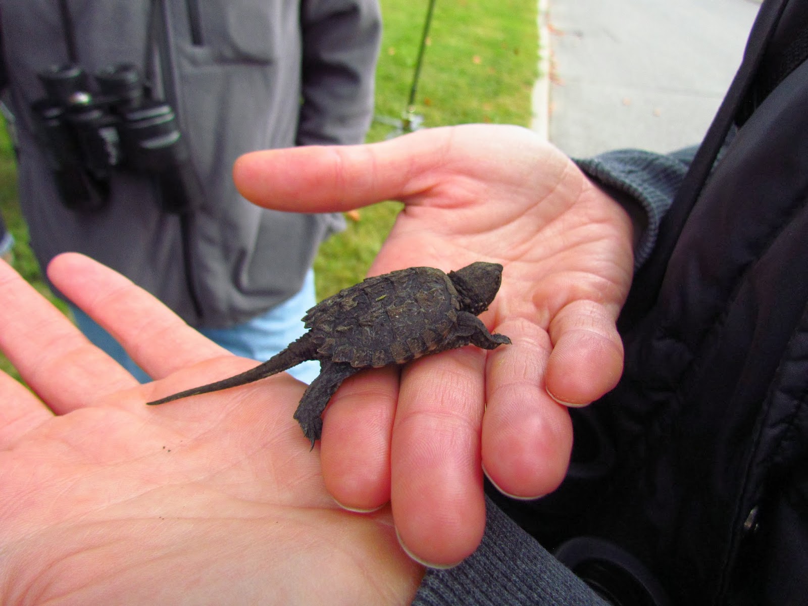 Each walk focused on a particular group of plants or animals. Simple kitchen items revealed a world of tiny living things which thrive in complex communities, often unnoticed, in water. An eye opening experience for many. An ultraviolet light focused on a white sheet called-in night-flying insects for close examination after the sun had set. Birders, expert and aspiring, rose early to search out common and rare species. We even got an up close look at snapping turtles that were making their way from the nest to the water. All in all it was a very exciting 24 hours!